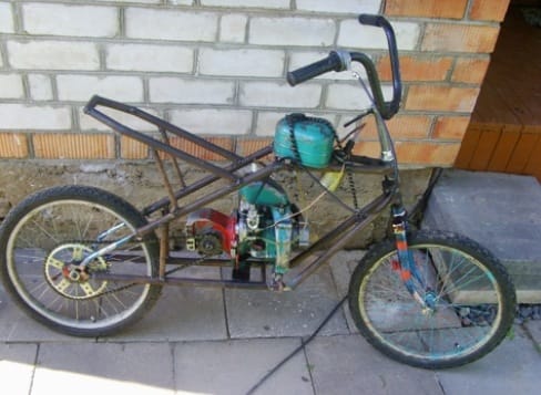 Базой для конструирования обычно становится старая дедушкина бензопила Дружба и не менее древний велосипед, с которым можно проводить любые эксперименты по переделке рамы под монтаж привода.