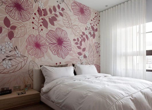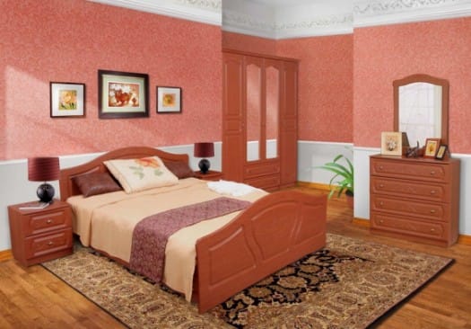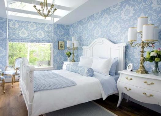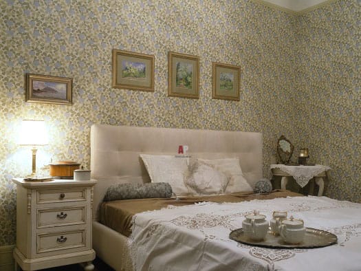 2. Спальня. Подойдёт любой вид обоев, но предпочтительнее использовать наиболее долговечные шелкографические или с виниловым покрытием.
