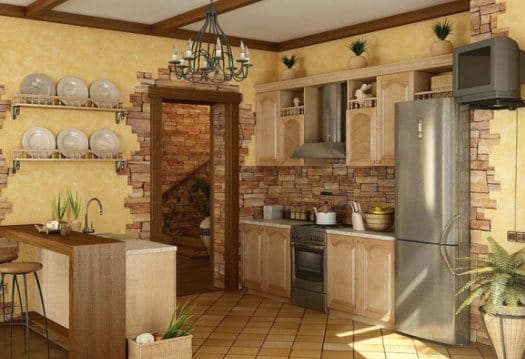 Для кухни прекрасно подойдут все тёплые тона обоев: оранжевый, красный, жёлтый, которые будут способствовать хорошему аппетиту и прекрасному настроению.