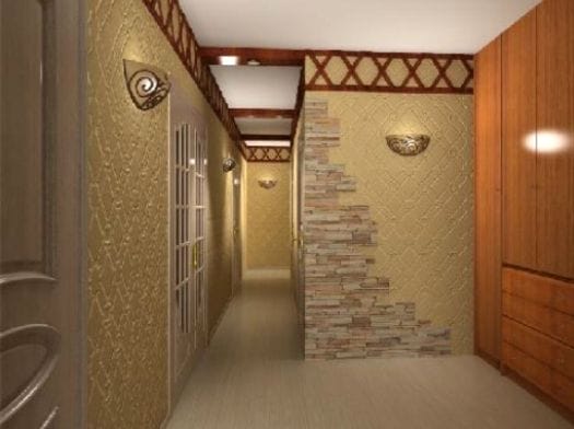 Прихожую и коридор обклеивают обоями с тёмными оттенками, но они ни в коем случае не должны контрастировать с другими стенами в помещении.