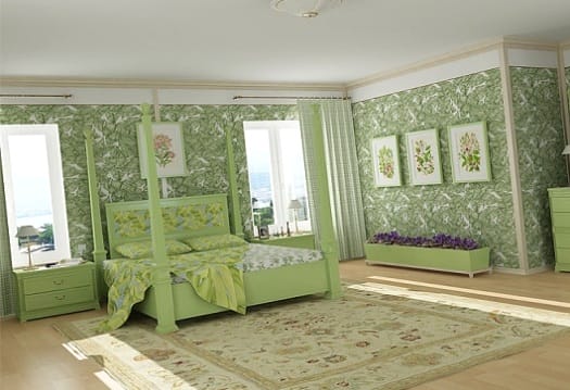 Для детской наилучшими являются зелёные или жёлтые обои, которые положительно влияют на психику ребёнка. Стены спальни должны быть тёмно-красного или розового цвета, вносящие страсть и чувственность между супругами. Если спальня только для сна и отдыха, то обои должны быть тёмно-зелёного или синего цвета.