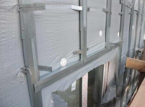 Для того, чтобы минеральная вата не пылила, ее перед облицовкой сайдингом защищают пароизоляционной пленкой. Она не только предохраняет атмосферу от мелких частиц ваты, но и не создает препятствий для водяного пара, проникающего из стен зданий в вентиляционный зазор.