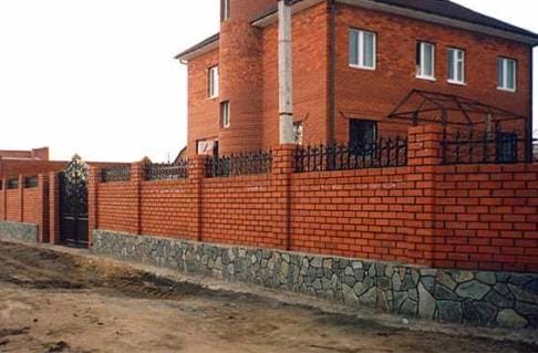Используйте для забора лицевой и фактурный кирпич, смело вводите элементы ковки, вставки из натурального камня, древесины и ваше творение приобретет нужную солидность и безупречную эстетику.
