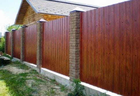 Это проверенный бюджетный вариант ограждения участка. Для его возведения не требуется мощный фундамент. Если высота забора не превышает 1,5 метра, будет достаточно залить бетоном только ямы под металлические столбы каркаса. Глубину заделки столбов в бетон при этом делают не менее 80 сантиметров. Собирать каркас будет намного удобнее, если выбрать столбы для забора не круглого, а квадратного сечения.