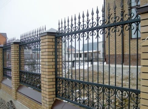 При отсутствии дефицита средств рекомендуем остановить выбор на кованом заборе, который будет установлен на фундаменте из рваного камня. Отлично выглядят ограждения, выложенные из камня и цветного кирпича с простенками, украшенными коваными решетками.