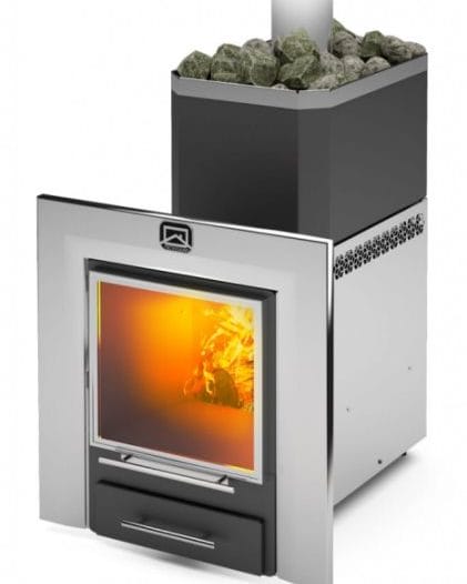 В-третьих, эстетика внешнего вида банной печи с топочным тоннелем, оснащенным смотровым каминным стеклом намного выше стандартного варианта – глухой дверцы, расположенной в парилке.