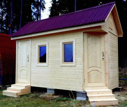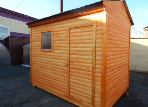 Более простой хозблок «под ключ» (3х2 м), обшитый деревянным блокхаусом с туалетом и кладовой для инвентаря обойдется вам не дороже 40 000 рублей (6 600 руб./м2).