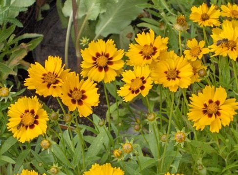 На переднем плане высаживаем ландыш и кореопсис – группами или можно чередовать.