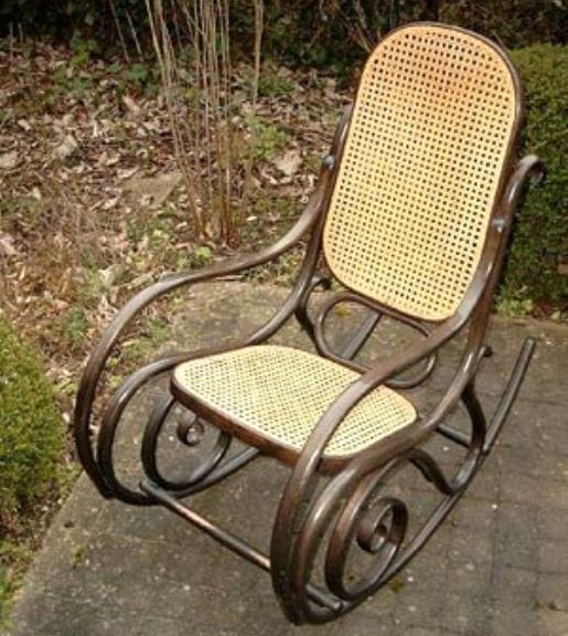 Классическое кресло-качалка изготавливалась из прочной и легкой ивовой лозы.