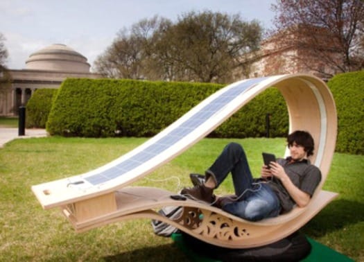 Среди современных конструкций встречаются поистине уникальные модели, которые помимо комфорта гарантируют владельцу независимость от внешних источников энергии. Вот, например, закрытое кресло-качалка, оснащенное солнечными батареями. Их мощности хватает для питания ноутбука или планшетного компьютера.