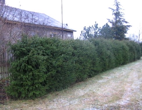 - изгородь свыше 3 м – колючий боярышник, тис, кизил съедобный, восточная или западная туя, граб обыкновенный и др.