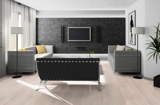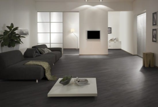 Интерьер в стиле минимализм отличается сдержанностью, как правило, сочетает в себе два-три оттенка, построен на контрасте или практически монохромен. В таком интерьере на пол чаще укладывают ламинат белого, серого или черного цвета.