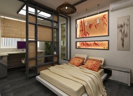 Цвет пола интерьера в японском стиле может быть как светлым, так и темным, главное сохранить общий цветовой баланс помещения.