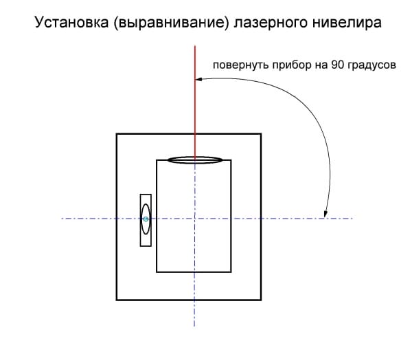 Эту операцию нужно выполнить дважды: первый раз выставить «горизонт» луча в произвольном положении прибора, а второй – развернув его корпус на 90 градусов.