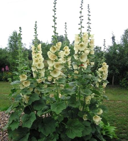 С чем сочетать мальву? Обратите внимание на такие культуры, как дельфиниум, нивяник крупный, Хатька олбия, Чистец византийский, флоксы, монарда, манжетка и другие растения из этой группы.