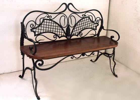 Кованые скамейки относятся к области высокого кузнечного искусства. Приблизиться к идеалу можно без молота и горна, купив готовый кованый декор и аккуратно приварив его к стальному каркасу.
