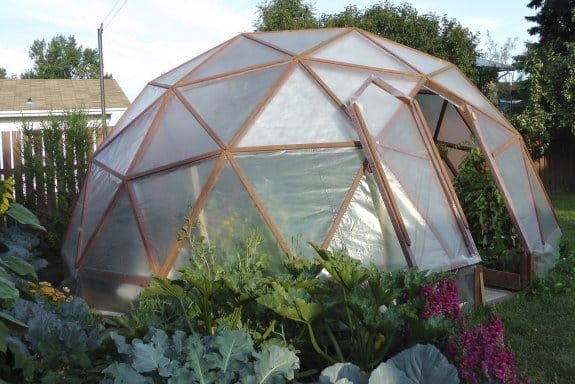 Деревянная конструкция может быть не только прямоугольной, но и круглой, собранной по принципу геодезического купола (фото №2).
