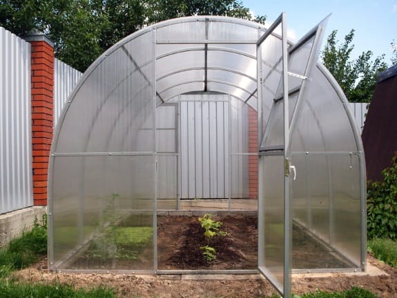 В продаже сегодня широко представлены теплицы заводского производства – компактные и простые в монтаже. Для их изготовления чаще всего используют два материала: профильную оцинкованную трубу и сотовый поликарбонат. Средняя стоимость конструкции шириной 2,7 и длиной 4 метра, укомплектованной 2 дверьми и 2 форточками составляет 19 000-22 000 рублей.