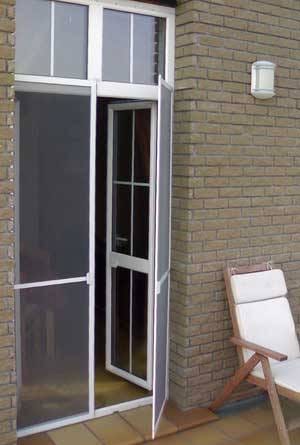 Помимо такой шторы, на дверь можно установить алюминиевую рамку с сетчатым полотном, наподобие оконных рамочных сеток. Навесить раму лучше на петли, чтобы она открывалась и закрывалась как обычная дверь.