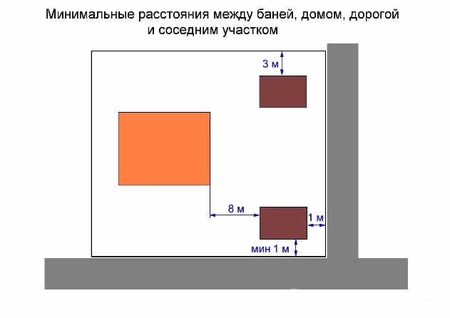 На каком расстоянии можно строить баню?