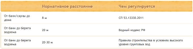 Поэтому, отмеряя расстояние от бани до забора соседей, не забывайте о необходимости разумно удалить ее от реки, озера или пруда. Безопасным для возведения бани является расстояние от береговой линии не менее 20 метров.