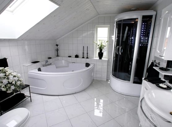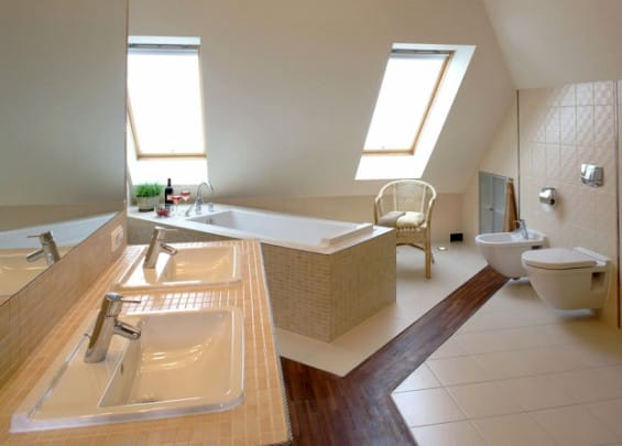 - Имея два и более этажа в жилом доме, постарайтесь обустроить санузел на каждом этаже. Это избавит вас от хождения по лестнице, особенно актуально в ночное время и при наличии маленьких детей. При этом на первом этаже достаточно разместить только туалет с умывальником, а на последующих этажах – полноценную ванную комнату в непосредственной близости к спальням. Ванная вблизи жилых помещений второго этажа может быть совмещена с туалетом.