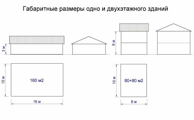 В одноуровневом и двухуровневом вариантах зданий площади перекрытий одинаковы (по 160 м2). Поэтому в споре о том, что дешевле построить, данный пункт разногласий не вызывает.