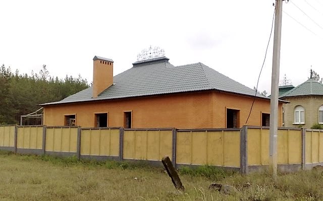 Стены (высота 3 м, толщина 0,43 м) — газобетонные блоки + облицовочный кирпич.