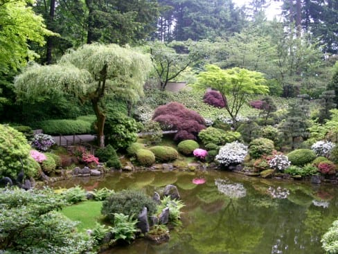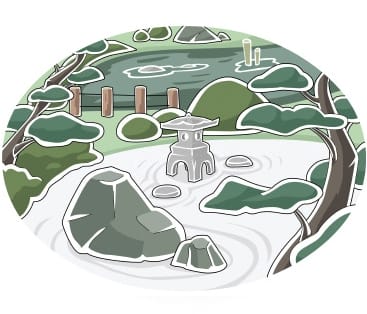 Основная задача композиции, которой придерживается японский сад, — создание гармонии и равновесия всех его составных элементов. Он должен сочетать в себе порядок, свободу, покой и движение. Главной функцией японского сада является оценка красоты окружающего пейзажа с определенного места обзора, будь-то терраса или окно дома.