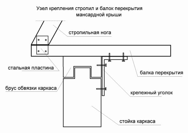 Стропильные ноги удобно крепить к балкам через монтажные пластины.