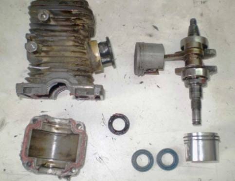 В этом случае нужно заглянуть в цилиндропоршневую группу. Визуальный осмотр цилиндра и поршня в этом случае помогает найти причину. Если на них заметны сколы или задиры, то пила будет нормально работать только после замены этих узлов. Устранить данную проблему можно расточкой цилиндра под новый поршень ремонтного размера.
