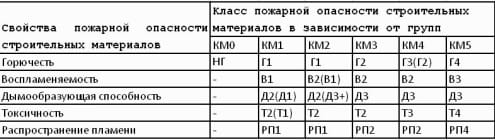 Все негорючие материалы относятся к классу КМ0, а горючие делятся на 5 классов от КМ1 до КМ5.