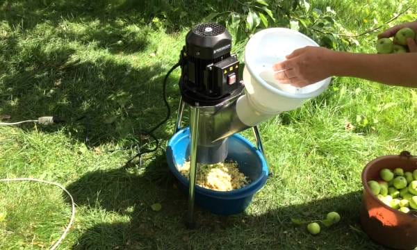 Поскольку все соковые прессы работают в паре с измельчителями, нужно сказать несколько слов и об этих устройствах. Самый простой механизм представляет собой стальной барабан-терку, помещенный в кожух с загрузочной горловиной. Вращением ручки измельчитель приводится в действие, превращая фрукты в мелкую крошку-мезгу.