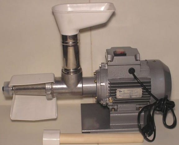 Шнековый пресс-соковыжималка с электромотором предназначен для переработки ягод, винограда и помидоров. Измельчая сырье, шнек продавливает его через сито и вырабатывает сок с большим количеством мякоти.