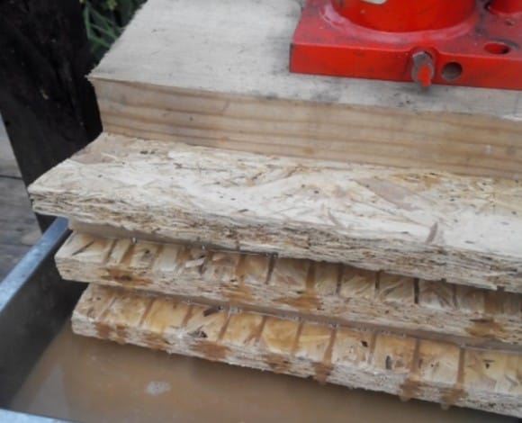 А вот материал для дренажной решетки мастер выбрал неправильно. Вместо натуральной древесины он использовал плиту OSB, сделав в ней пропилы для оттока сока. Мы не советуем вам повторять эту ошибку, поскольку в древесностружечных плитах присутствует токсичный фенолформальдегидный клей.