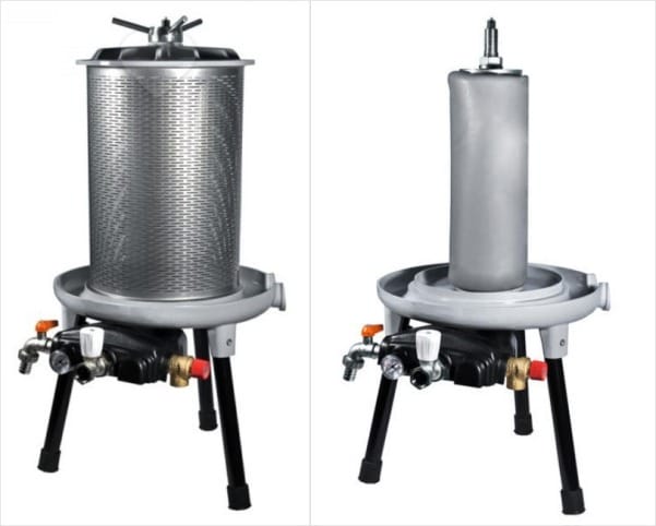 Оригинальный способ выжимки реализован в гидравлическом прессе Grifo (Грифо). В нем нет гидравлического домкрата, а установлена мощная мембрана «бочонок». Она расширяется под давлением водопроводной воды (1,5-2 атм.) и выдавливает сок через перфорированную стенку кожуха.