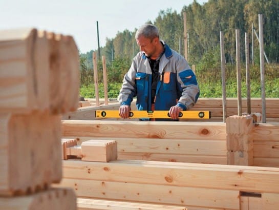 Первый венец сруба – самый ответственный. На этом этапе нужно еще раз проверить горизонтальность фундамента и удалить все обнаруженные неровности. Грамотное строительство предполагает монтаж первого венца из твердой породы древесины, а не из сосны. Поэтому, комплектуя свой заказ, позаботьтесь о том, чтобы в него включили так называемый подкладочный брус из лиственницы или дуба. Перед установкой его нужно антисептировать.