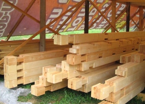Для сборки внешних стен используют брус с поперечным сечением 150 и 200 мм. Более тонкий материал идет на монтаж перегородок. Стандартная длина — 6 метров.