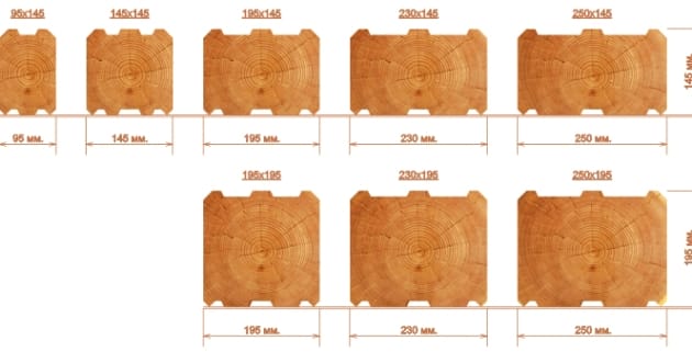 В промышленных масштабах профилированный брус изготавливается в нескольких вариантах поперечного сечения: