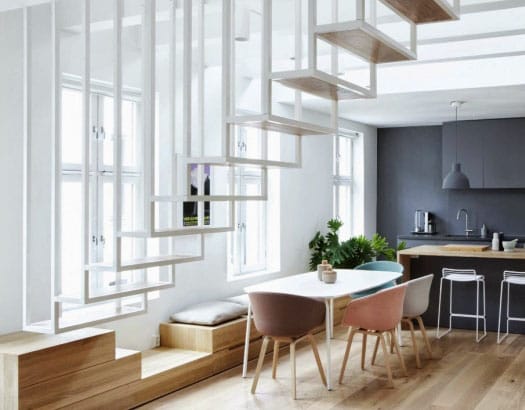 Скандинавский стиль к нам пришел из северных стран, где натуральному дереву светлых оттенков традиционно уделяется особое внимание, так как жители стран испытывают недостаток света. Часто деревянные ступени и перила просто окрашивают в белый цвет.