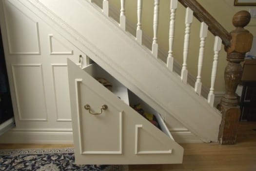 Как же можно использовать пространство под лестницей? Во-первых, устроить место для хранения вещей и инвентаря.