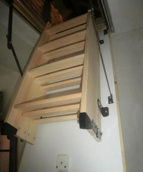 В таких случаях на помощь приходят конструкции чердачных лестниц, которые можно приобрести в строительных магазинах. Такие лестницы изготавливаются по принципу «телескопа» или «гармошки», раздвигаются в случае необходимости, в собранном состоянии не «съедают» полезное пространство помещения.
