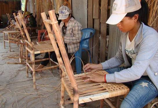 После очистки от коры стебли подвергаются калибровке и обработке паром, в таком состоянии ротанг хорошо гнется, а после сушки мебель сохраняет форму, приобретая прочность. Производство, а точнее сказать изготовление мебели практически безотходно. Очищенная кора так же идет в дело, из нее делают циновки и маты.
