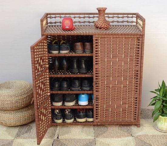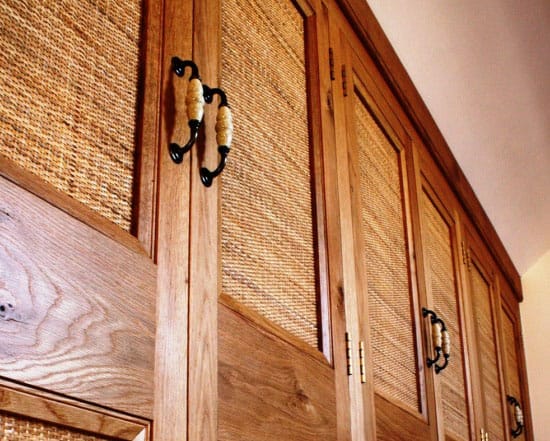 Сегодня даже шкафы выполняются в сочетании с ротангом, как правило, из этого материала делают только дверки, а вот жесткий каркас и полки – из листов МДФ, фанеры, массива дерева.