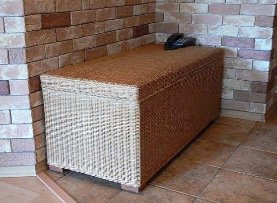 Банкетка-сундук из ротанга очень полезная и функциональная вещь. Такой сундук может занять место в прихожей, на него можно присесть, обуваясь, внутри расположатся вещи для хранения.