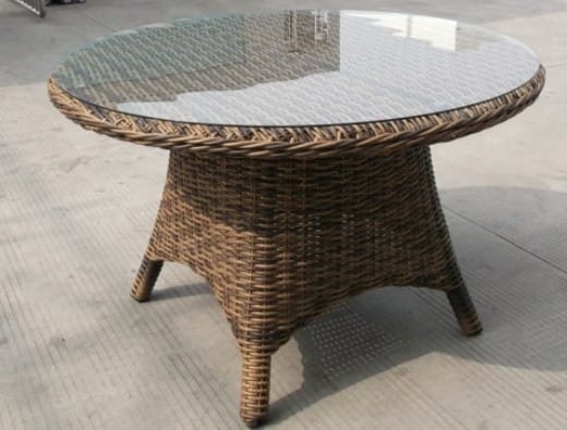 Комбинация ротанга со стеклом делает стол более легким и невесомым.