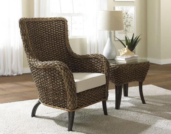 Плетеный журнальный столик может стать акцентом в интерьере, сочетаясь практически с любой мебелью.