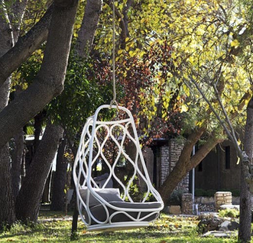 Главное не подвеска, а удобная основа. Вот девиз разработчиков, придумавших очень простую и оригинальную конструкцию. Эти качели состоят из единственного ажурного металлического кресла, подвешиваемого за веревку к прочной ветке дерева.