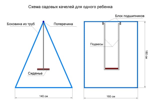 Перед тем, как сделать самодельные качели, продумайте основные размеры этой конструкции и для подстраховки сверьтесь с габаритами готовых заводских изделий.