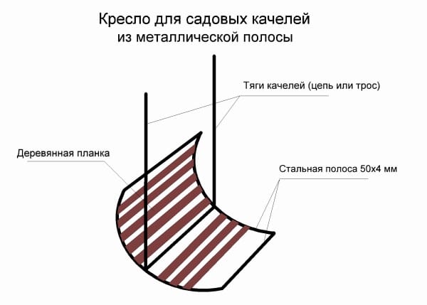 Рассмотрев рисунок простых качелей из металла, можно сделать вывод о том, что простота конструкции не является синонимом комфорта.